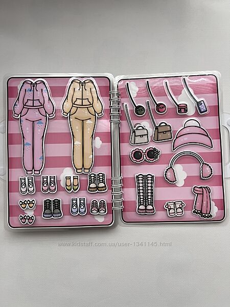 Книга на липучках з лялькою та гардеробом для неї - це справжня знахідка для розвитку творчості та дрібної моторики у дітей🤩50 елементів гардеробу та аксесуарів - все, що потрібно для створення неперевершених образів👗