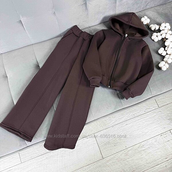 Костюм дівчинці кофта на замку + штани палаццо. Суперова якість. Тканина - тринитка на флісі, туреччина. Не кошлатиться.📐Заміри:
