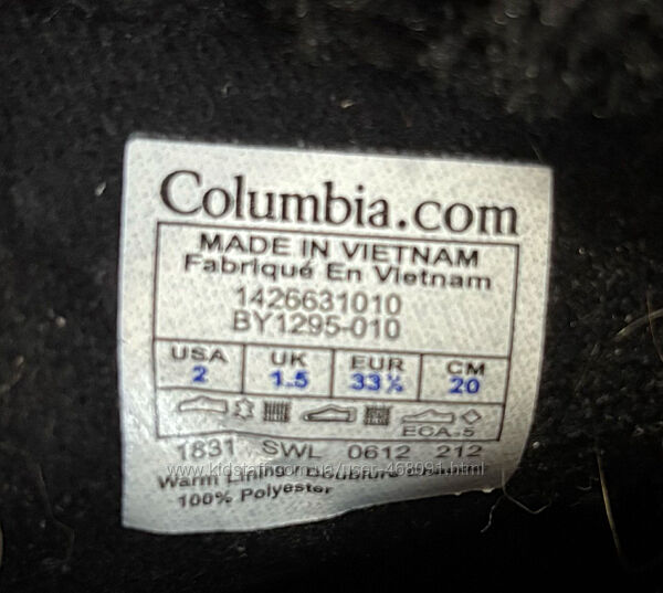 Зимові черевики ColumbiaРозмір 33,5 повна довжина устілки 21,4см. На ніжку 20см