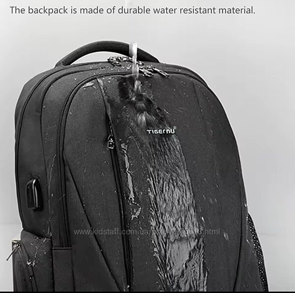 Вологостійкість - рюкзак Tigernu T-B3399 виготовлений з водовідштовхувального матеріалу, який збереже всі цінні речі всередині цілими і неушкодженими.