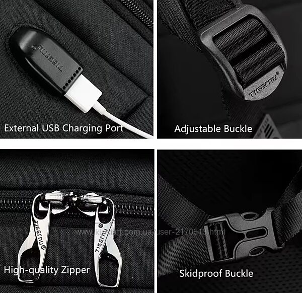 Кодовий замок - на блискавці основного відділення рюкзака Tigernu T-B3399 встановлений замок з набором трьох цифр, він допоможе вам зберегти габаритну техніку від крадіжки.