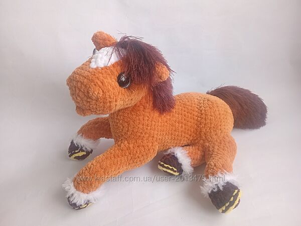 Ця плюшева конячка-не просто іграшка,а маленьке диво,створене з любов´ю і турботоюКожен стібок,кожна пасмояка гриви та хвоста-результат днів кропітка праці,натхнення й бажання дарувати затишок