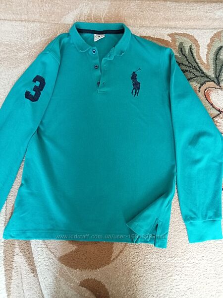 реглан поло, виробництво Турція, зверху на трьох гудзиках знизу побокам є розрізи, колір бірюзовий, стан чудовий, заміри по довжині 61см., рукав від плеча 57см.