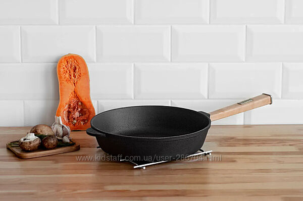 Чавунні сковороди – це міцний, довговічний посуд з високою теплоємністю та теплопровідністю, який повільно нагрівається, але довго зберігає тепло, забезпечуючи рівномірне прогрівання та відмінні антипригарні властивості при правильному догляді. Вони ідеально підходять для смаження, тушкування та запікання на всіх типах плит, а також у духовці та на відкритому вогні. Однак, чавун потребує ретельного догляду: його не можна мити в посудомийній машині, а після миття вручну його слід добре висушувати та періодично змащувати олією, щоб запобігти іржавінню та зберегти антипригарні властивості.O2035-P Чавунна сковорода Optimа 200 х 35мм ручка бордо - 415грн