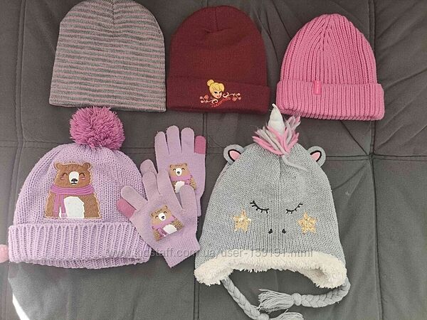 3 шарфа, 5 шапок і рукавички на 6-9 років одним лотом