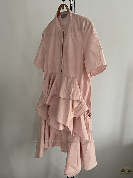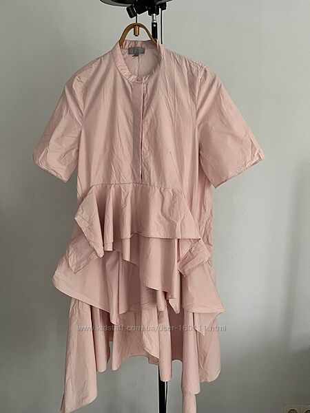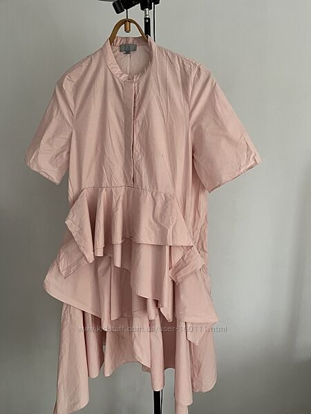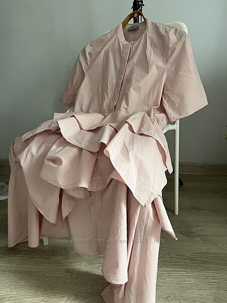 ❗️ Відправляю після повної оплати на карту Стан ідеальний Розмір 36 Ця сукня-сорочка виготовлена з м´якого бавовняного попліну з діагональними вставками, що розкльошуються від спідниці, створюючи ефект об´єму. Сукня без коміра, має приховану планку та акуратні короткі рукави. Зріст моделі 178 см, розмір 36. Довжина по спинці розміру 36 становить 92 см. Пог 48 см 100% бавовна. Можна прати в пральній машині.