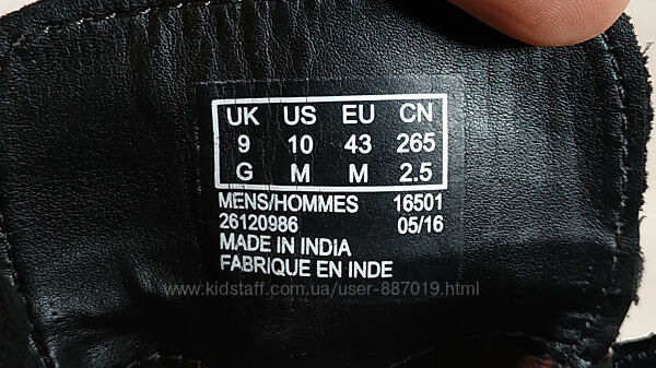 Розмір вказаний UK 9 G / 43, довжина устілки всередені 28.5 см (ідуть на стопу приблизно 28 см).