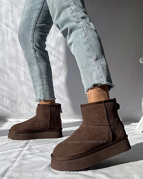 Низькі уггі з натуральної замші на платформі. Підошва легка, холодостійка. Зміцнена пятка, дуже добре тримає форму, не буде скошуватись. Найкраще взуття для зими. Дуже зручно та тепло, класна якість за доступною інтернет-ціною.