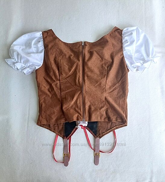 Пропоную карнавальний костюм Піратка. Складається з блузки, спідниці, капелюха та ременя. Вживаний 1 раз на тематичну вечірку, акуратно, стан відмінний, дивіться фото.Розмір вказано L. Довжина блузки від плеча до низу 50 см, ширина грудей під пахвами 53 см, ширина талії 45 см. Довжина спідниці спереду 36 см, ззаду 56 см, ширина талії 33 см, тягнеться до 48 см.
