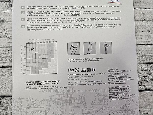 Виконані з поліамідної італійської нитки Fulgar в подвійному опльоті, яке надає виробу особливу м´якість і високу міцність, а також має рівномірне плетіння.