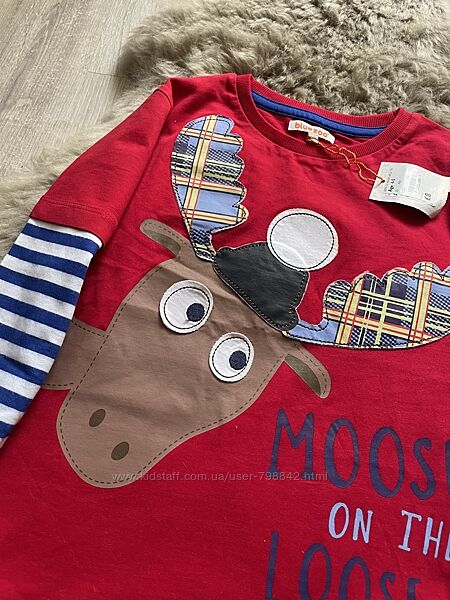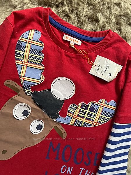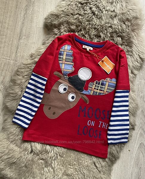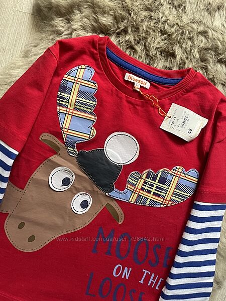 Дитячий лонгслів від англійського бренду Bluezoo від Debenhams, який славиться своєю неперевершеною якістю.Малюнок-аплікація у вигляді смішного оленя.