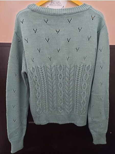 Дуже красивий бірюзвий светр зі сильною ажурною в´язкою в ідеальному стані. Манжети з гумою.Розмір S