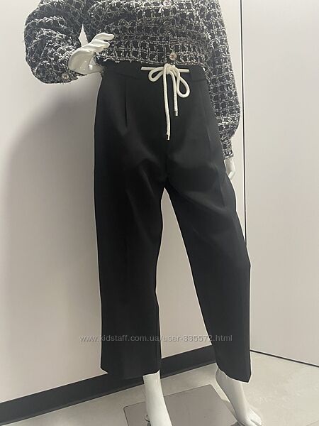 Классические черный брюки Louis Vuitton с белым веревочным поясом