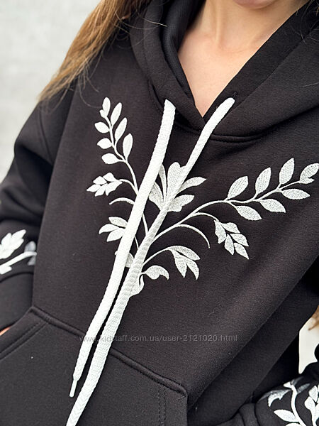Костюм чорний утеплений з вишивкою, костюм етно для дівчинки,