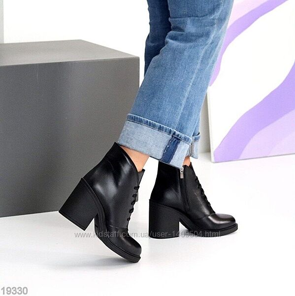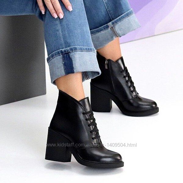 Зимові шкіряні черевики ботильйони на каблуку. Збоку є функціонуючий замок. Спереду зашнуровуються. Взуття стійке та зручне. Матеріал - натуральна шкіра. Середина утеплена густим напівшерстяним хутром. Стильне, якісне та модне взуття від українського виробника.