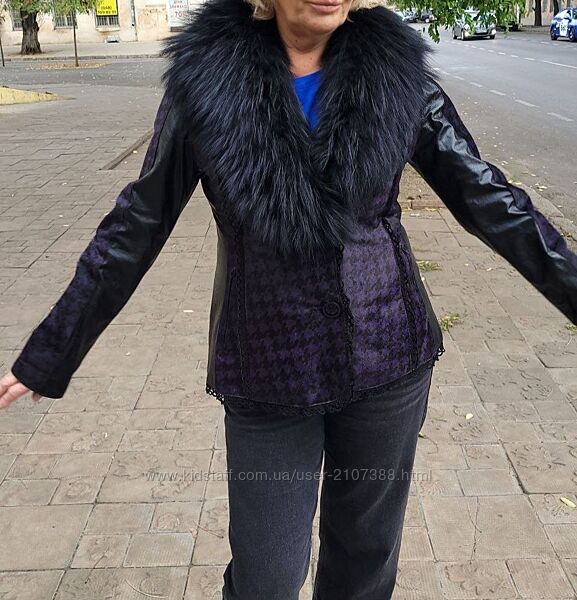 Кожаная женская куртка с песцом Gino Monti. Состояние новой. Демисезонная.Мех -пони, воротник -песец. Р. 48 Производитель-Турция.