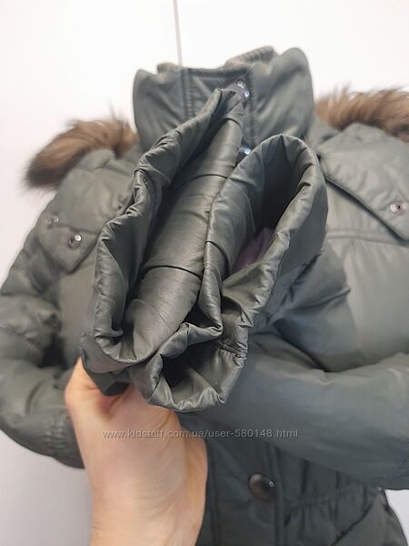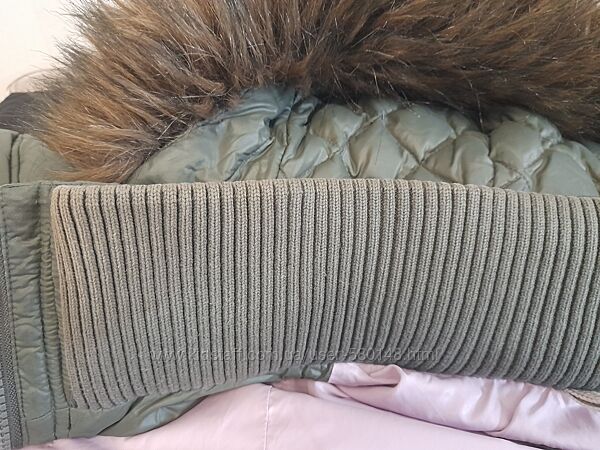 ПОГ 48смПОТ 43см ПОС 50см Рукав 62см Довжина 90см Підкладка ціла. Капюшон і штучне хутро відстібаються. Нюанси на останніх 4-х фото - є пару затяжок, трохи втратив колір трикотажний комір. Гумка в поясі рзтягнулася, стала як звичайний ремінець, просто підтягнула на металевій пряжці, нічого критичного.