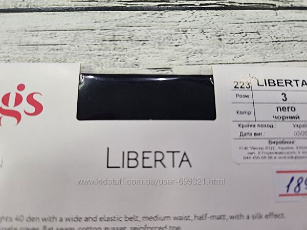 Прозорі колготки LIBERTA 40 ден з широким та еластичним поясом.Середня посадка, напівматові, з шовковим ефектом.