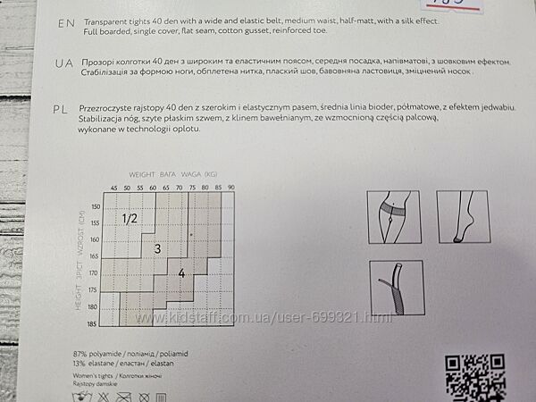 | Рост | 145/150, 150/155, 155/160, 160/165, 165/170, 170/175, 175/180 |