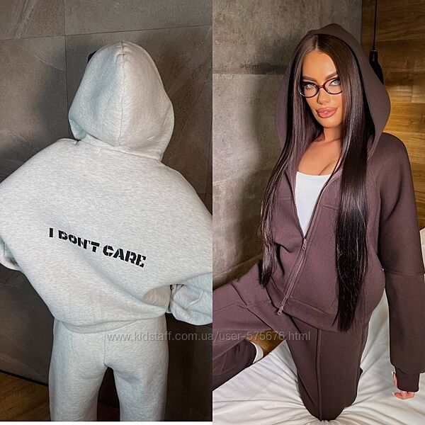 Подробное описание: р.42 до 50р. Теплий костюм на флісі на спинці надпис I dont care