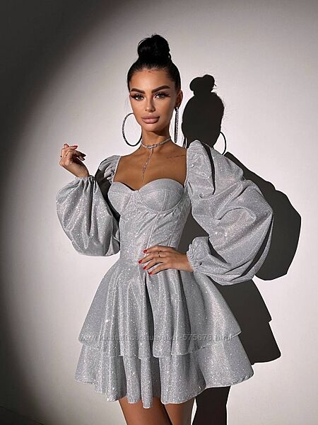 Подробное описание: Сяюча корсетна сукня бюстьє з подвійною спідницею