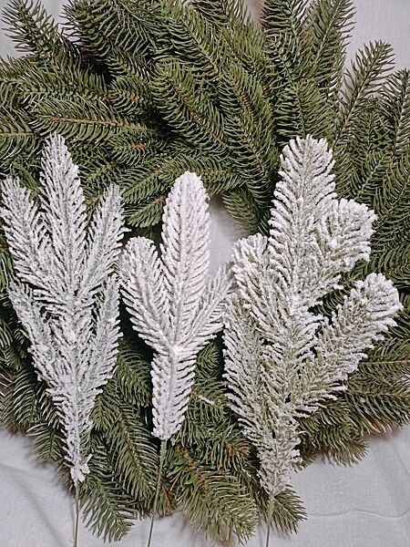 Подробное описание: Засніжені гілочки ялинки, гілочки ялинки, веточки елки, новорічний декор.