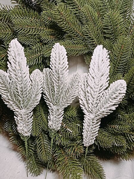 Засніжені гілочки ялинки, гілочки ялинки, веточки елки, новорічний декор.