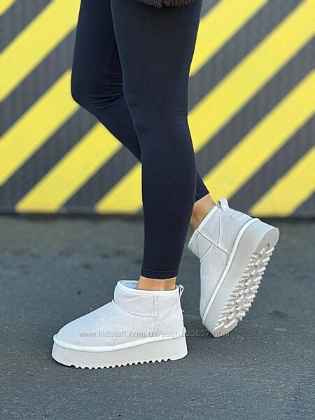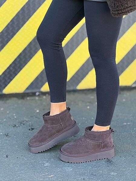 Натуральні короткі замшеві уггі на платформіКольора: чорні, капучино, світло-сірі, шоколад
