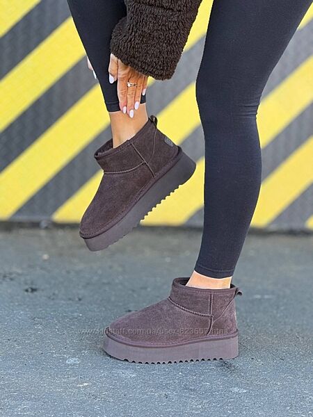 Подробное описание: Натуральні замшеві короткі уггі на платформі чорні, капучино шоколад