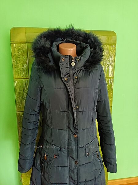 Куртка пуховик Fly з натуральним хутром на капюшоні.Розмір - M.