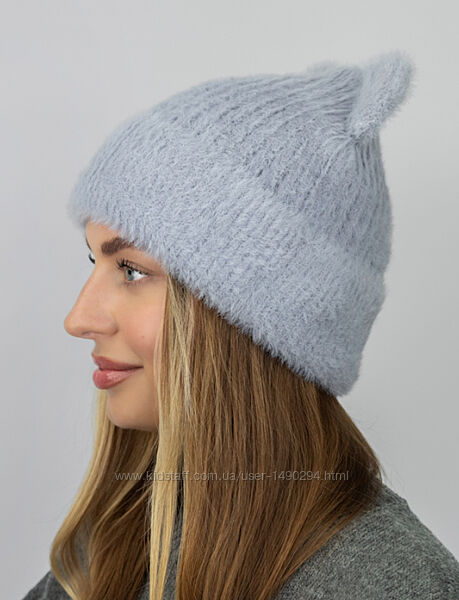 Шапка женская Коди серый с ушками размер 56-59