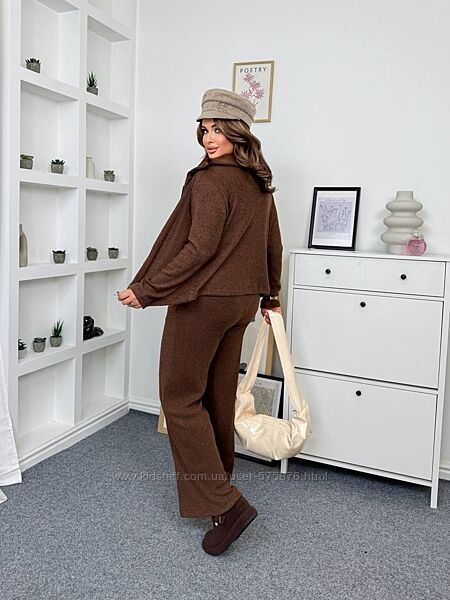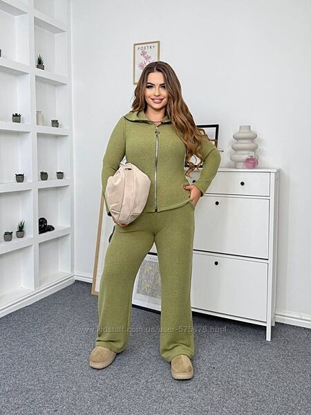 Костюм штани палацо та кофтинка на блискавціТканина Ангора рубчик
