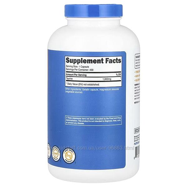 Подробное описание: Nutricost, таурин, 1000 мг, 400 капсул