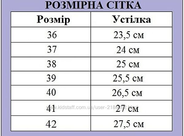 | Размер | 35, 35.5, 36, 36.5, 37, 37.5, 38, 38.5, 39, 39.5, 40, 40.5, 41, 41.5, 42 |