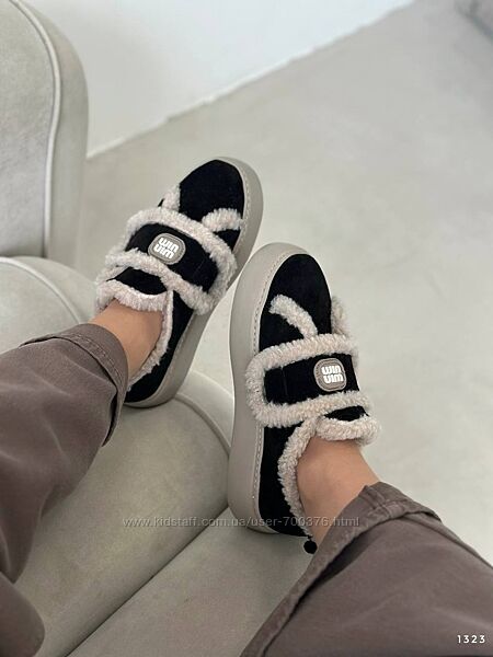 Зимові лофери на липучці, натуральна замша/хутро тедді, чорні