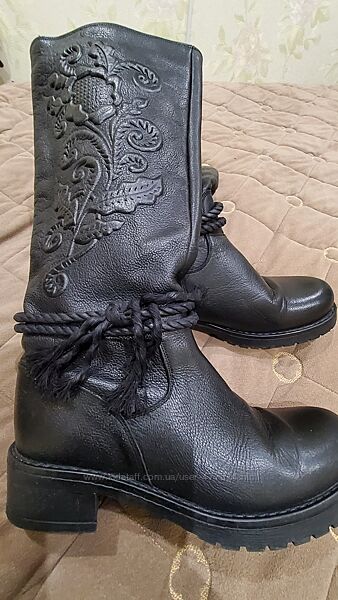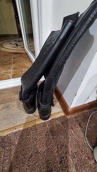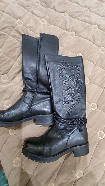 Очень добротные, неубиваемые сапоги, кожа плотная, качество на высоте, 38 стандартный размер, утепление на фото. Высота 42 с каблуком, каблук 4 см, ширина сверху 18.
