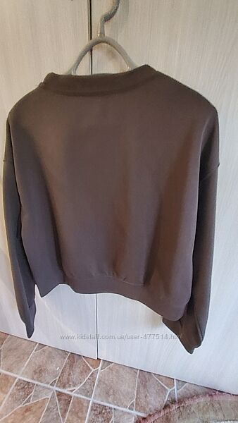 Плотный свитшот, очень хорошее качество, укороченный 55 см, по груди 57, без утепления, размер от М до небольшой Л, на С будет овер., красивый коричневый цвет.