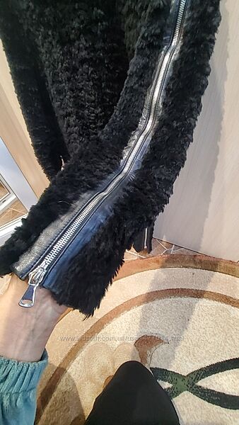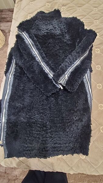 Дуже стильна дублянка, блискавки робочі, за бажання можна розстебнути, на кнопках, кишені, сезон холодна осінь євро зима, стоила 750, на мене на жаль стала мала, розмір С, можа та на хс, дивіться заміри. Спереду 89, ззаду трохи довша 94, по грудях 50, низ 56