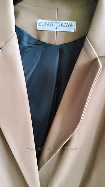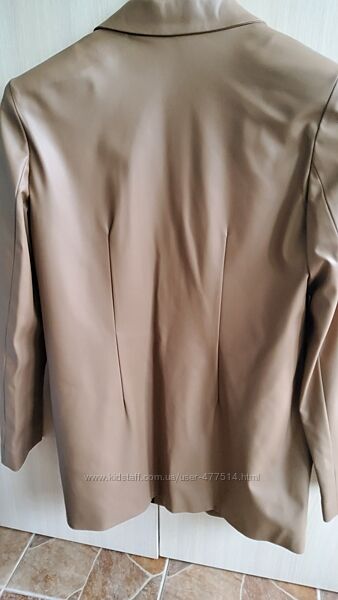 Дизайнерский жакет из экокожи, укр.46 идёт на с-м, красивый благородный цвет, мягенький но держит форму, рабочие карманы, по спинке немного приталенный, рабочие карманы, длина 73, рукав 63, по груди 49, по талия в застегнутом 48, по низу примерно 54, практичная, универсальная модель, будете довольны