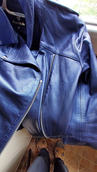 Эксклюзивная куртка, очень красивый необычный цвет, как с перламутром, будьте неповторимой! Брала в дорогом магазине, всего было две таких, куртка в идеале, за исключением на последнем фото, капнул освежитель для дома) под волосами или шарф вообще незаметно, очень красивая дорогая кожа. Размер С полноценный, длина 65, по груди 49-50, рукав от плеча 60 см, бедра 51, плечи 38, отправлю новой почтой, можно безопасной оплатой