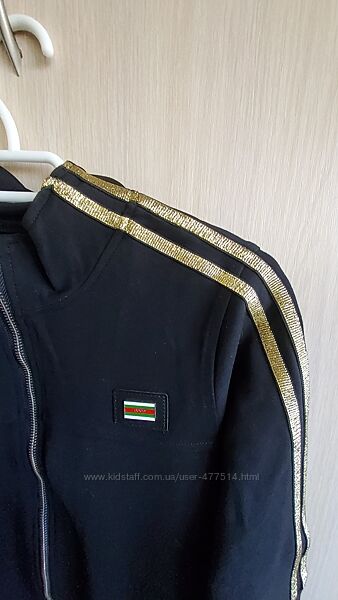 Качество выше цены! Брала себе в надежде похудеть, очень качественный костюм, бирка с составом утеряна, это плотный плотный трикотаж как с утяжкой, сезон весна осень, указан размер М, но и на С будет отлично, не овер, больше по фигуре, на брюках высокий манжет, очень стройнит, красивые золотые лампасы.Кофта длина 63 по спинке, рукав 57, по груди 45, плюс материал тянется, плечи 36, низ кофты 45