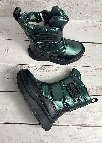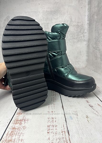 Подробное описание: Чоботи дутики зимові дитячі на дівчинку Paliament Чорно-зелений 626