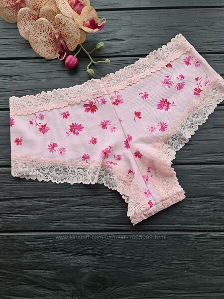 🍓Трусики в рубчик з мереживним оздобленням "WINK LACE-TRIM CHEEKY PANTY" - колекція PinkРозмір: