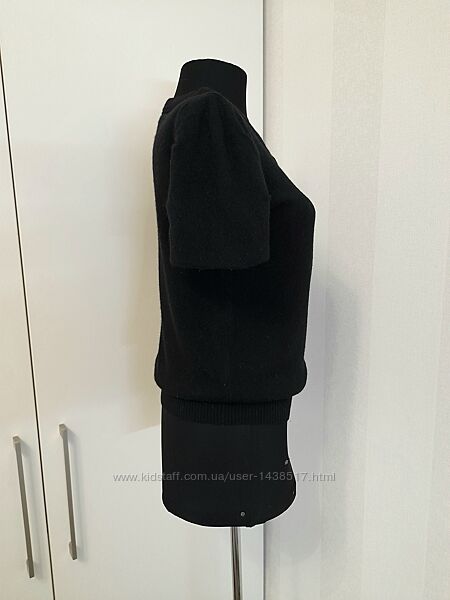 Рукав призібраний, ліхтариком, з подвійної тканини.Трикотаж м´який.Внутрішню етикетку зняла, була неприємна до тіла. В грудях 43см+, довжина 56см, рукав 22см. Ланцюжок не продається!
