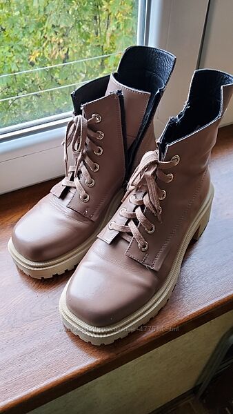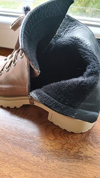 Красивые кожаные ботинки цвета мокко, производство Турция, подошва толстая, не скользящая, спокойно можно носить и зимой, прлномерный 38 на 24,5-25, высота с каблуком 21 см, каблук 5 см, едва заметная царапина на последнем фото, полнота регулируется шнурками.