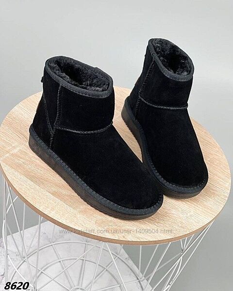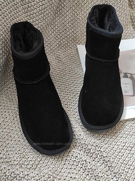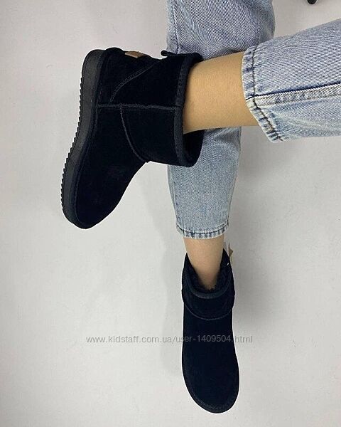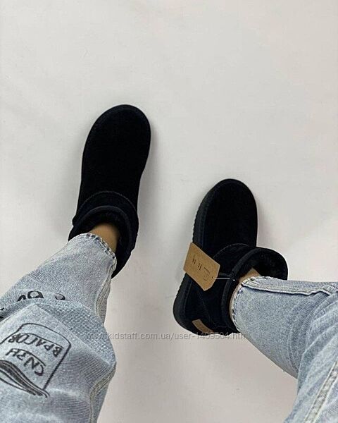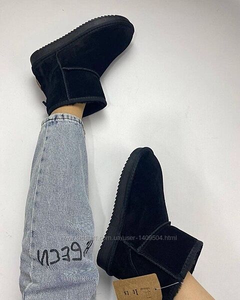 Чорні низькі уггі з натуральної замші. Міцна холодостійка підошва прошита по колу. Зміцнена пятка, дуже добре тримає форму, не буде скошуватись. Найкраще взуття для зими. Дуже зручно та тепло, класна якість за доступною інтернет-ціною
