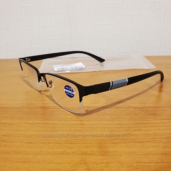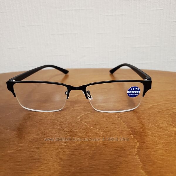 Деловые очки в полу оправе с линзами для чтения - диоптрия +1,75.Стильный дизайн и деловая форма. Современные материалы