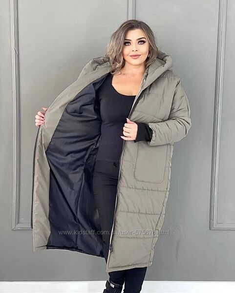 Подробное описание: р.50 до 60р. Куртка-пальто зимове плащівка канада, силікон 200
