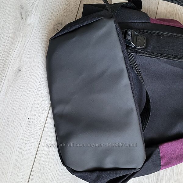 1 велике відділення з кишенею для взуття 1 кишеня попереду 1 кишенька збоку Брендована фурнітура Ручка-петля зверху Низ з водонепрониклим покриттям Колір чорний + фіолетовий
