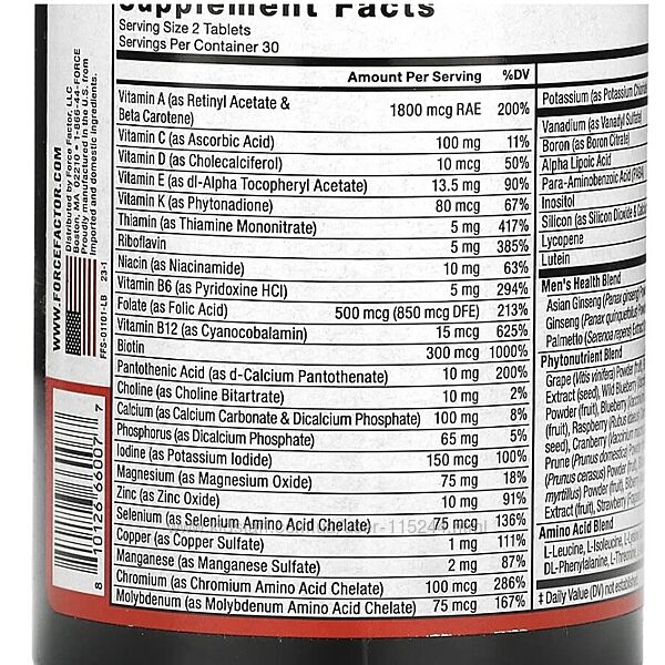 Подробное описание: Force Factor, мультивітаміни для чоловіків, 60 таблеток